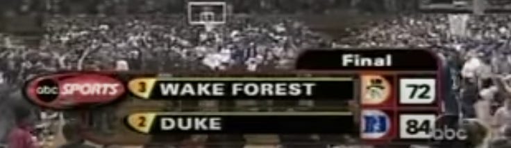 Wake Forest would win the rematch with Duke later that season in Winston-Salem, 90-84, before pushing undefeated #5 St. Joseph’s to the limit in the Sweet Sixteen, eventually losing 84-80. The Demon Deacons would return their top seven players and spend the entire 2004-2005 season ranked no lower than #7 in the AP poll. Duke would go on to win the ACC regular season crown, before dropping the ACC Tournament final to Maryland in overtime (Duke’s only ACC Tournament loss from 1999-2006). The top-seeded Blue Devils would move through the Atlanta Regional, winning a classic to advance to Coach K’s 10th Final Four. I’d be remiss not to mention Skip Prosser and his unexpected passing on July 26, 2007. I’m particularly fond of one of Coach Prosser’s often repeated phrases, “never delay gratitude.” It’s a mantra I’ve heard Jay Bilas often reference since, and one that I appreciate more as time goes by - don’t wait to show appreciation or tell someone thank you, because tomorrow is never guaranteed.