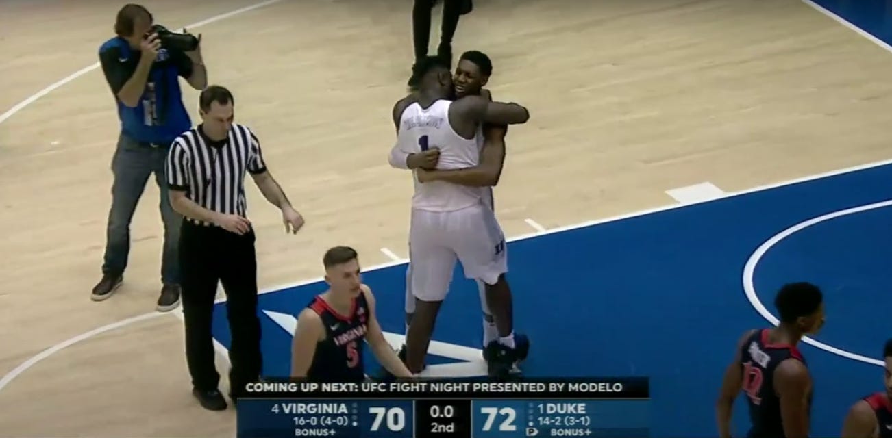 Virginia started Ty Jerome, De’Andre Hunter, Kyle Guy, Jack Salt, and Mamadi Diakite. Tony Bennett used Jay Huff, Braxton Key, and Kihei Clark off the bench. With Tre Jones out, Coach K elected to insert Jack White and Marques Bolden into the starting lineup to go along with Zion Williamson, R.J. Barrett, and Cam Reddish. Javin DeLaurier and Alex O’Connell were the only subs for Duke.