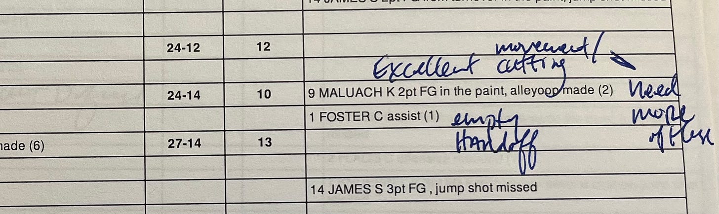 In fact, my postgame notes on this possession were “excellent movement and cutting - need more of these.” These referring to lob passes for Khaman.