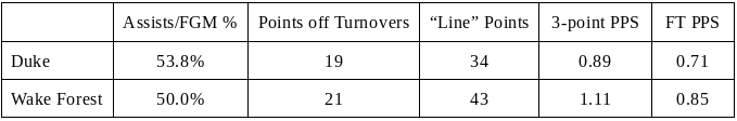 From a stats perspective, the loss last night at Wake Forest can be traced to a few areas. Duke was less efficient from 3 than Wake but the real disparity came from the free throw line. The Demon Deacons made 22 of 26 free throw attempts, outscoring Duke by 12 from the foul line and illustrating Wake’s attacking offense all night. As Coach Scheyer said, Wake was the aggressor for sure. The other stat not included above was on the glass. Wake Forest won the rebounding battle 37-29 and limited Duke to just 7 offensive rebounds, an area that has been an advantage for the Blue Devils so far this season. The points off turnovers were fairly even but the 21 for Wake Forest was the most for a Duke opponent to this point.