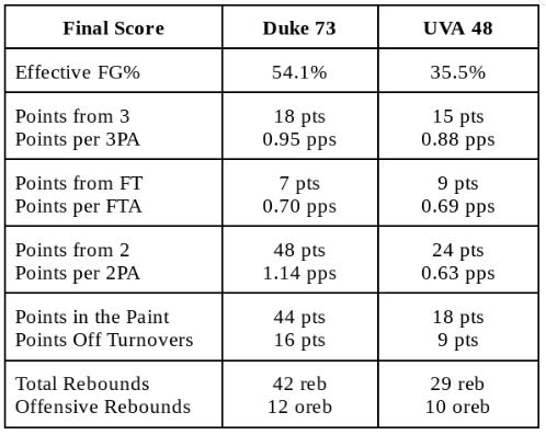 Box Score - Duke 73 Virginia 48