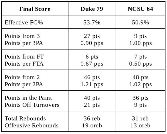 Box Score - Duke 79 NC State 64